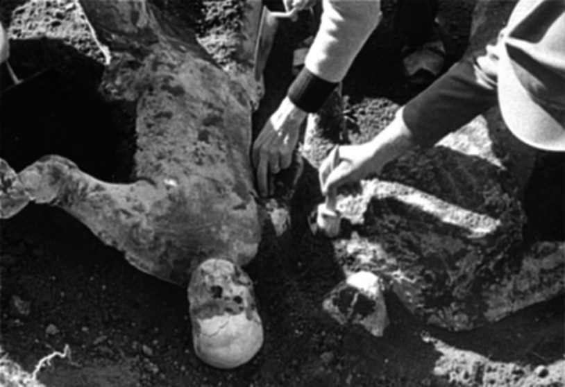 It was this dynamic, disturbing pulsation – conveyed by the mortal remains that, in the form of plaster casts, literally emerge from the ground in Pompeii – that caused such anguish to Ingrid Bergman (Katharine Joyce) in Rossellini’s film. In a man and a woman caught unawares by the fury of the earth two thousand years previously, and from the archives of the earth, entwined in each other for all eternity, but suddenly laid bare by the indiscreet eyes of the archaeologist, she sees their own destiny as a couple as though in a dream: an intolerable death in life and yet tolerated in silence for years on end. Only then, says Martin Scorsese, “their eyes open at last”. She, as troubled as ever, exclaims “life is so short”; to which he responds brusquely: “that’s why one should make the most of it.” At the end of Fuisse, Zanotto’s Self-Fossil “poured out of nothing” into the “strata of the earth” that “fall back into silence”, though with a qualifying question mark, telling us that it is “also for us” that these “lips”, in spite of everything, “move weakly from absence”.