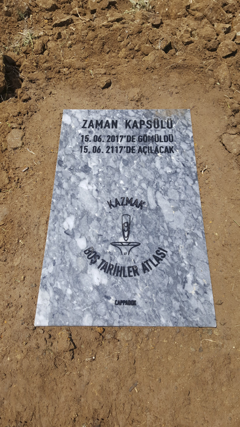 In resisting exhibitionist, by visualizing and hence voiding the consciousness underpinning the physical/sensual dumping ground of micro/macro ‘histories’ based on small or large interests, a time capsule concretizes this organic and cultural sounding of the inevitable destruction inherent within temporary order/s (history/s) governed by chaos. Submerged in the flesh of the earth in Cappadocia, it may also be considered as a kernel/seed of civilization sown in the myth/womb of Mother Earth.