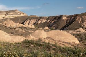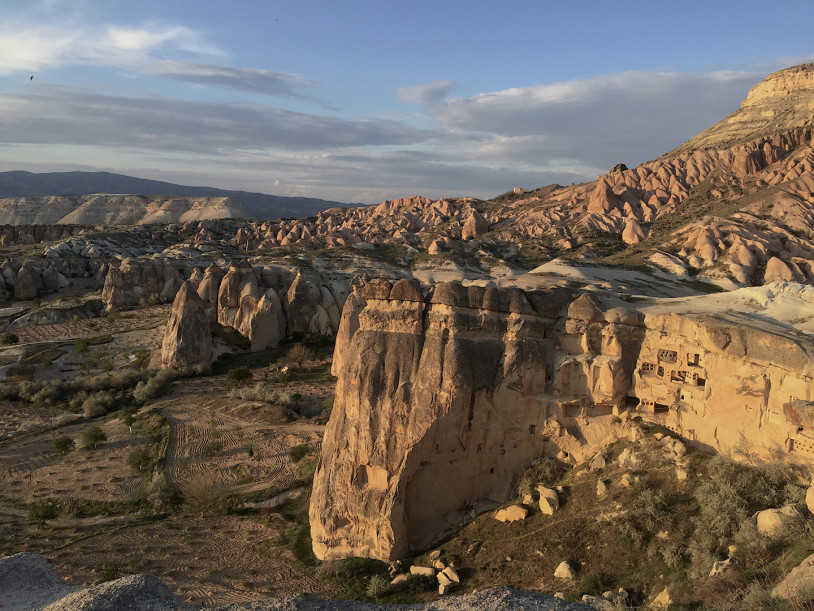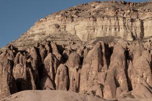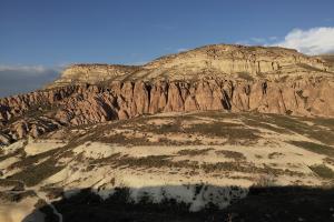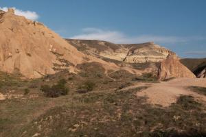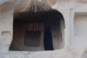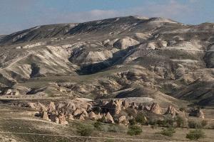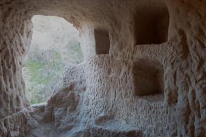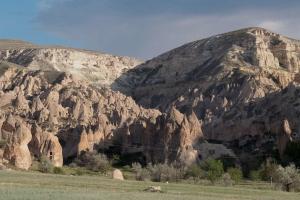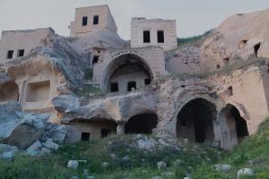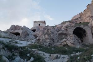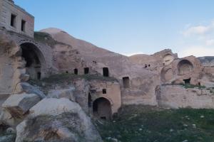 “Diolectian and Maximian started to conscript the Christians in Anatolia to reinforce the military after the heavy defeat against the Persian in 296. (Probably the Galerius disaster) Able bodied man who could wield a weapon leave the city after hearing the approach of the soldiers. But the soldiers find the vineyard-keeper Hieron who was a strong man and they force him to join the army. Hieron defends himself and takes refuge in a well-protected cave in Cappadocia but eventually he must surrender along with a few comrades, three of which are his relatives. During a journey they are made to make by the soldiers an angel clad in white informs him that he will become a martyr for his faith. Following that Hieron and his friends decide not to join a pagan sacrifice ritual planned for the next day which all newcomers have to join. This decision leads to them being, threatened, beaten and tortured. Hieron holds his faith, but his relative Victor submits and buys his freedom in exchange for his land in Korama village. When a soldier asked him where he is from Hieron answered “he was a native of a village of Cappadocia Secunda called [Μα]τιανή*. Hieron, however, underwent a quite different fate: before being decapitated together with his companions, his right hand was cut off for having frustrated the Roman soldiers. In the will which the saint dictated to his grandsons, Antonius and Matronianus, he left a vineyard located near Pedesia (Πεδησία) to his sister Theotima, mentioned his brother Cyriacus and above all made known that his hand was to be kept as a relic in a resting place situated in the place called Kodessane where there appears to have been a country house, a παράδεισος or leisure garden, and an orchard probably belonging to ‘the most distinguished Rusticius, governor of the city of Ancyra’. Hieron, finally, charged his two relatives to testify as witnesses to the will’s validity in the presence of the inhabitants of Matiane and Korama. Catherine Jolivet- Lévy has identified Kodessane as a site located about a kilometer north of Göreme itself, modern Çavuşin , where she suggests that the martyrial church dedicated to St John the Baptist in fact preserved a relic of Hieron in a niche carved into the apse. Çavuşin means in Turkish ‘(the cave) of the sergeant’ but echoes phonetically the ancient toponym Καδεσάνη/Κοδεσσάνη. Nicole Thierry has pothesized that the passion was composed almost at the same time as the building of the church at Çavuşin at the end of the fifth or the beginning of the sixth century.”