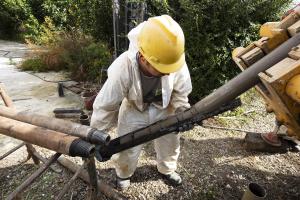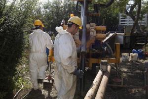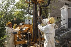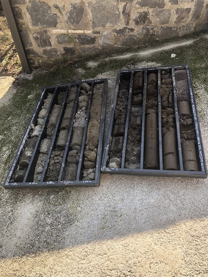At 9.30 m, down to the end of the core drilling (10 m below ground level), the alteration products of the lava substrate are found at the edge of the remains of the caldera of the Civita volcano.