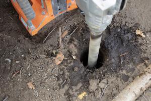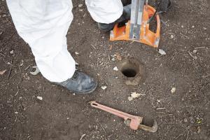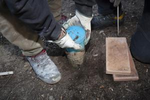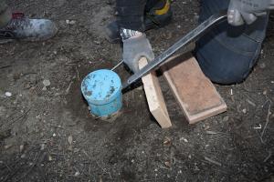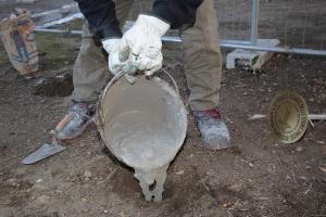 Down to 1.5 m below ground level, the backfill contains fragments of tuff and also large pieces of plaster. Between 1.5 and 1.7 m, a layer of compacted soil was found with a 3 cm-high fragment of tuff cut by the core sampler. There is nothing to show that this level is related to a plan for developing or using the area.