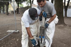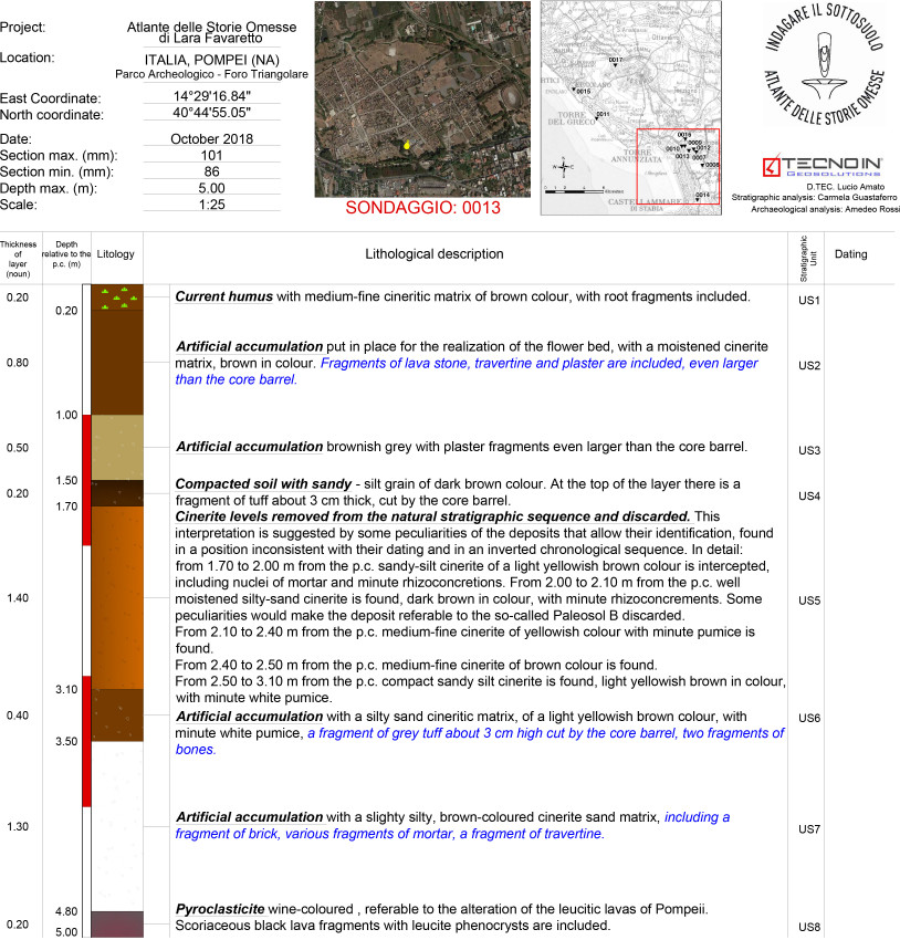 The 0013 core sampling point is inside the Archaeological Park of Pompeii, in the space enclosed by the arcades of the Triangular Forum, opposite the entrance to the Great Theatre.