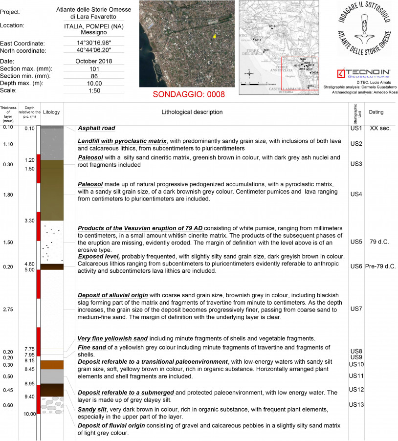 The 0008 core sampling was conducted near the coastal sand dune bank of Messigno, the innermost and most ancient in the Sarno alluvial plain, reaching a depth of 10 m below ground level.