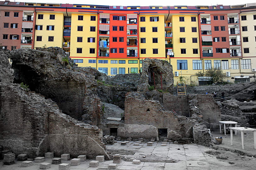 The situation remained like this until 2006, when work to salvage and excavate the site started up again. Only then was it discovered that, beneath all the refuse, lay what is still the oldest known archaeological site in the Vesuvius area dating from the period after the eruption of 79 AD: one of the first constructions to have its foundations buried in the ashes deposited by Vesuvius. The villa had a vast complex of baths, of which ten rooms have been excavated.