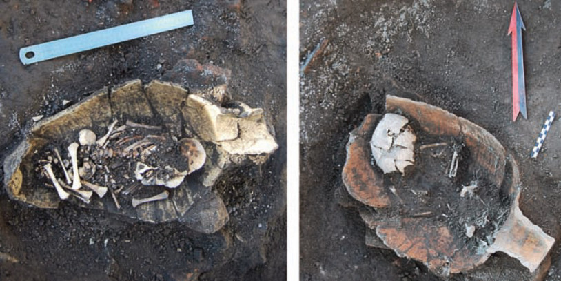 One of the most plausible hypotheses is that these were small burials: when the area lost its function and materials were found elsewhere, it is likely that older burials were unearthed and, in line with the religious beliefs regarding the world of the dead, it was decided to give a proper burial to the bones that had been disturbed. [...] It should be remembered that children who died were subject to a so-called “funeral discrimination”: an analysis of the type of funeral afforded to these members of the community offers some very interesting insights that help us understand the evolution of social systems and ritual beliefs involved in the very delicate stages of life before the individual was introduced into society. The fact that infants were excluded from the spaces used by the community for burials of adults does not, however, mean that they were denied the right of burial, and this is shown by the increasingly frequent unearthing of child burials in residential settings.