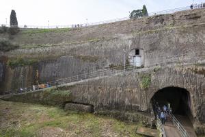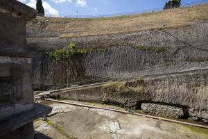 The stratigraphic sequence from the Octavian tuff (8,000 years) to the Pompeii eruption (AD 79) was not found in the sampling area because it had already been removed, revealing the tuff to be quarried.