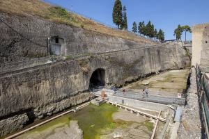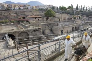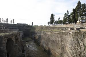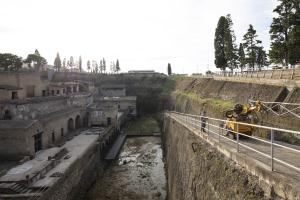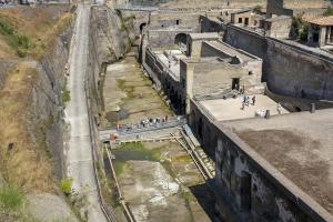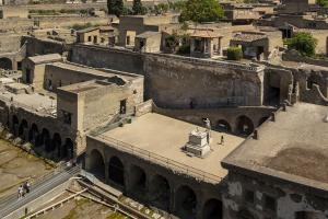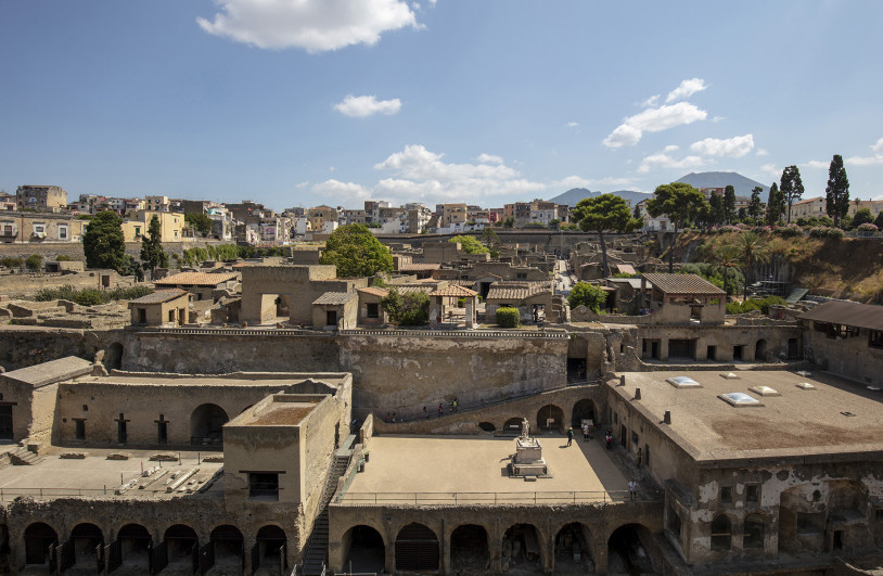 Founded during the Samnite period, Herculaneum was one of the circum-Vesuvian cities buried by the great eruption of Vesuvius in AD 79. This was the area hit by its most violent and sudden phenomena (pyroclastic flows mostly at high temperatures) and where it left its thickest deposits (up to 25 m).