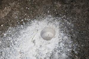 The ramp on which the core sampling site is located cuts through the deposits of the AD 79 eruption, which are exposed and clearly visible along the entire front of the excavation. The core sampling site is in the lower part of the ramp and thus goes only through the lower portion of the sequence, at -2.65 m below the paving of the ramp.