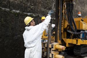 Below the layer of tuff, from 4.2 to 10 m below ground level, pyroclastites were found containing fragments of tuff and lava, some of which were even larger than the core sample.