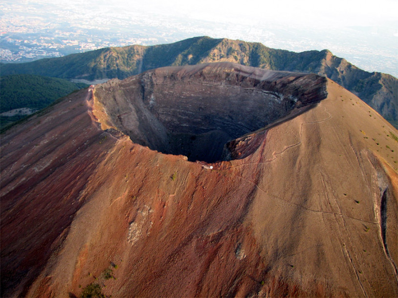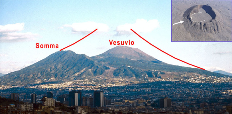 Fig. 1. Crater of Vesuvius, with the rim of the caldera of Monte Somma behind.