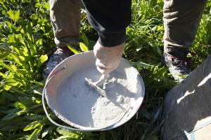 Below the archaeological layers and down to 5 m below ground level, there are pyroclastites containing leucite crystals. This mineral, which is characteristic of the volcanic substrate, suggests that the deposits come from the alteration and erosion of the lava bed.