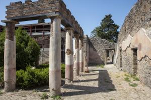 The 0010 core sampling point is inside the Archaeological Park of Pompeii, near the Villa of Diomedes. It is located in the external sector by the Herculaneum Gate, in front of the portico on the north-eastern slope of the Via dei Sepolcri. The last shop but one (no. 29), where the core sampling was made, has been identified as a potter’s workshop, connected to other work premises.